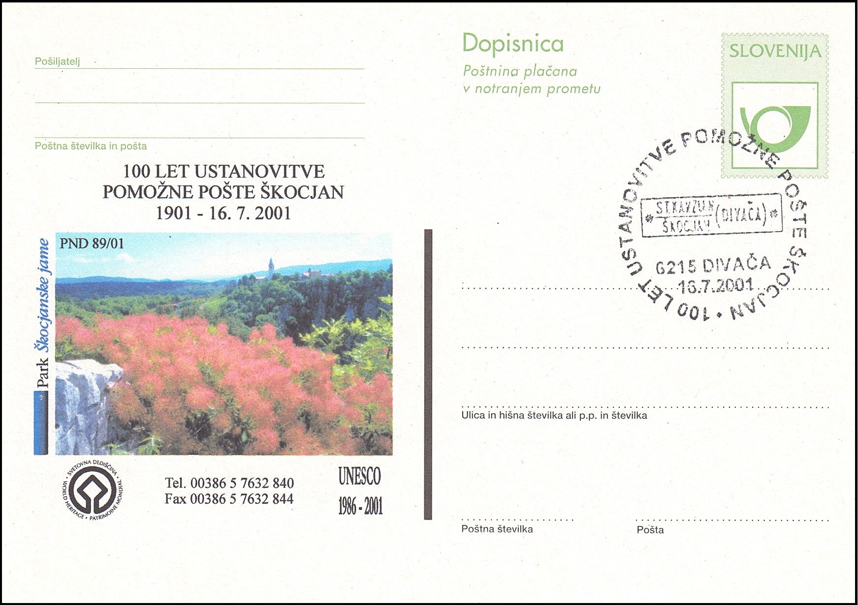 100 let ustanovitve pomožne pošte Škocjan ( 1901 - 2001 )