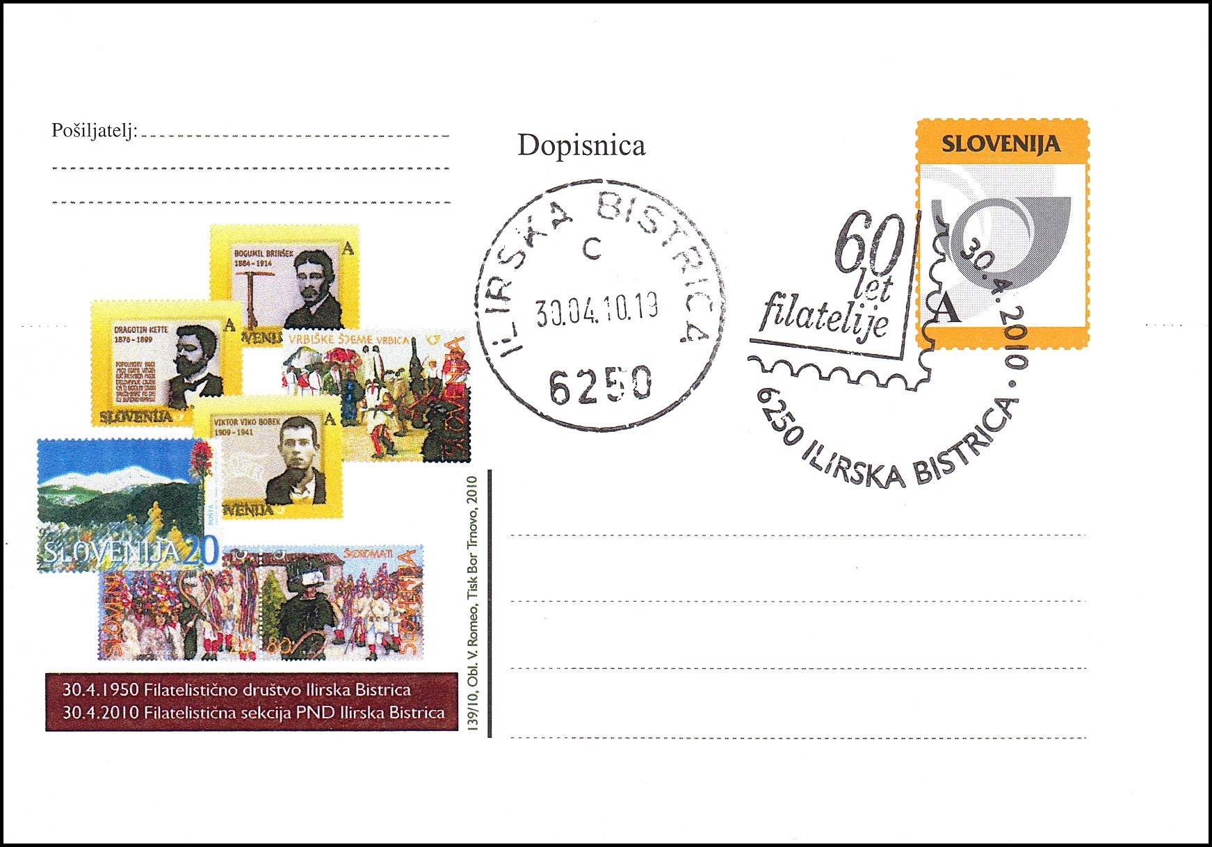 30. 4. 1950 Filatelistično društvo Ilirska Bistrica - 30. 4. 2010 Filatelistična sekcija PND Ilirska Bistrica