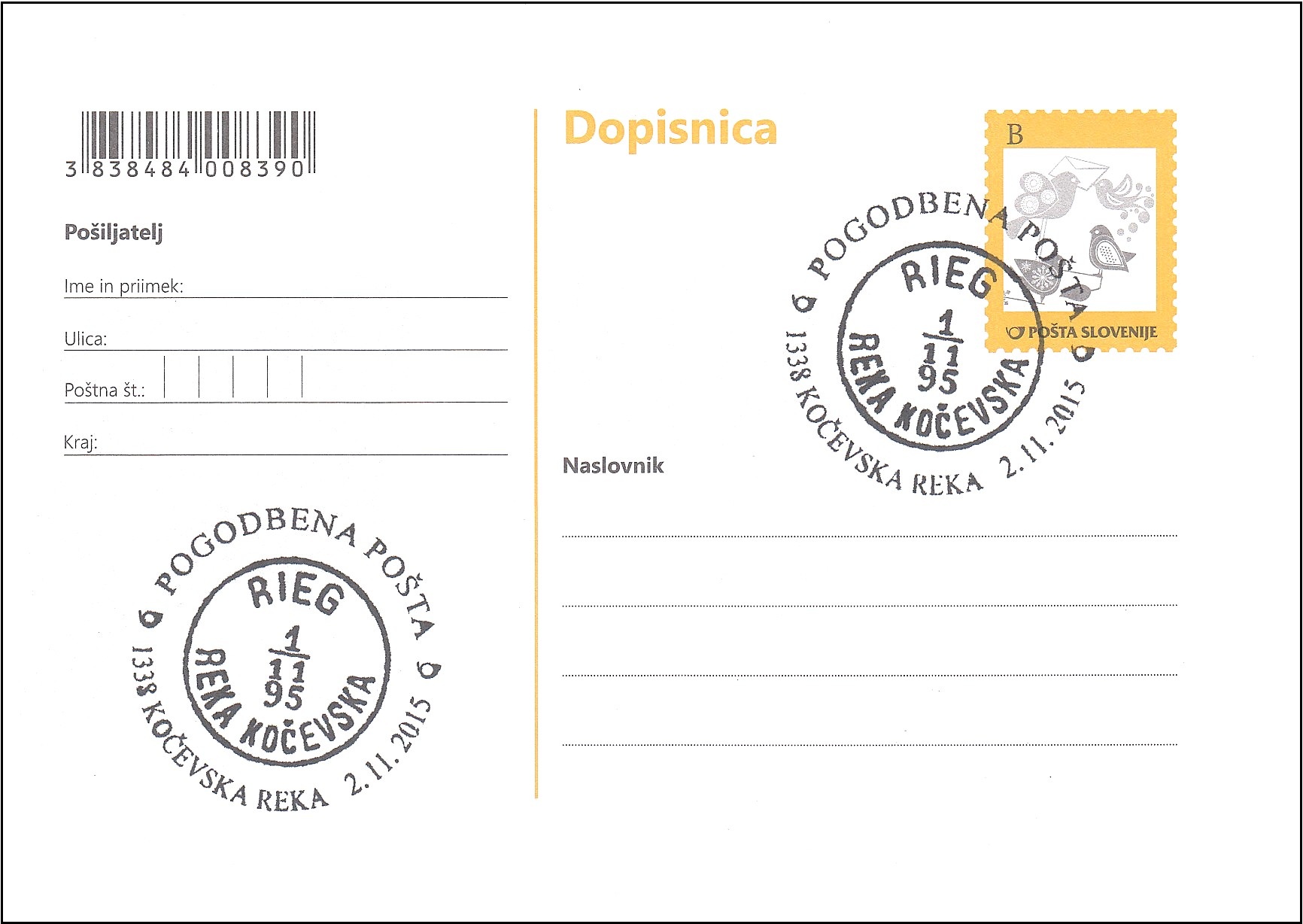POGODBENA POŠTA 1338 KOČEVSKA REKA