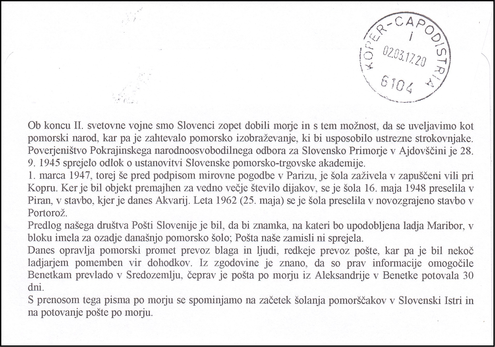 SLOVENSKA POMORSKA TRGOVSKA AKADEMIJA 1947 - 2017