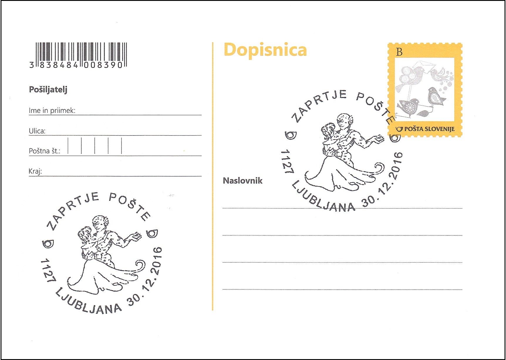 ZAPRTJE POŠTE 1127 LJUBLJANA