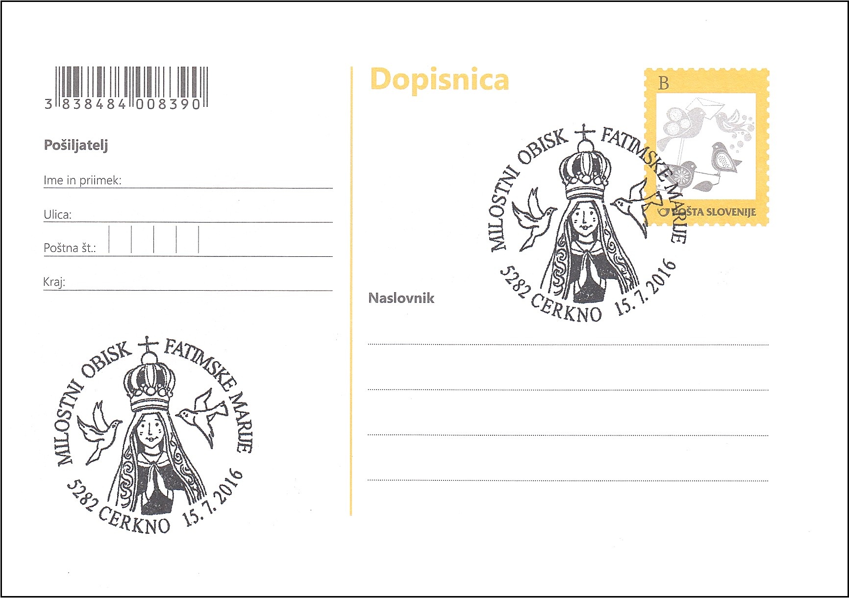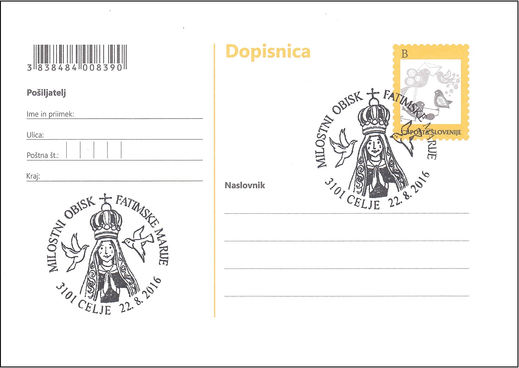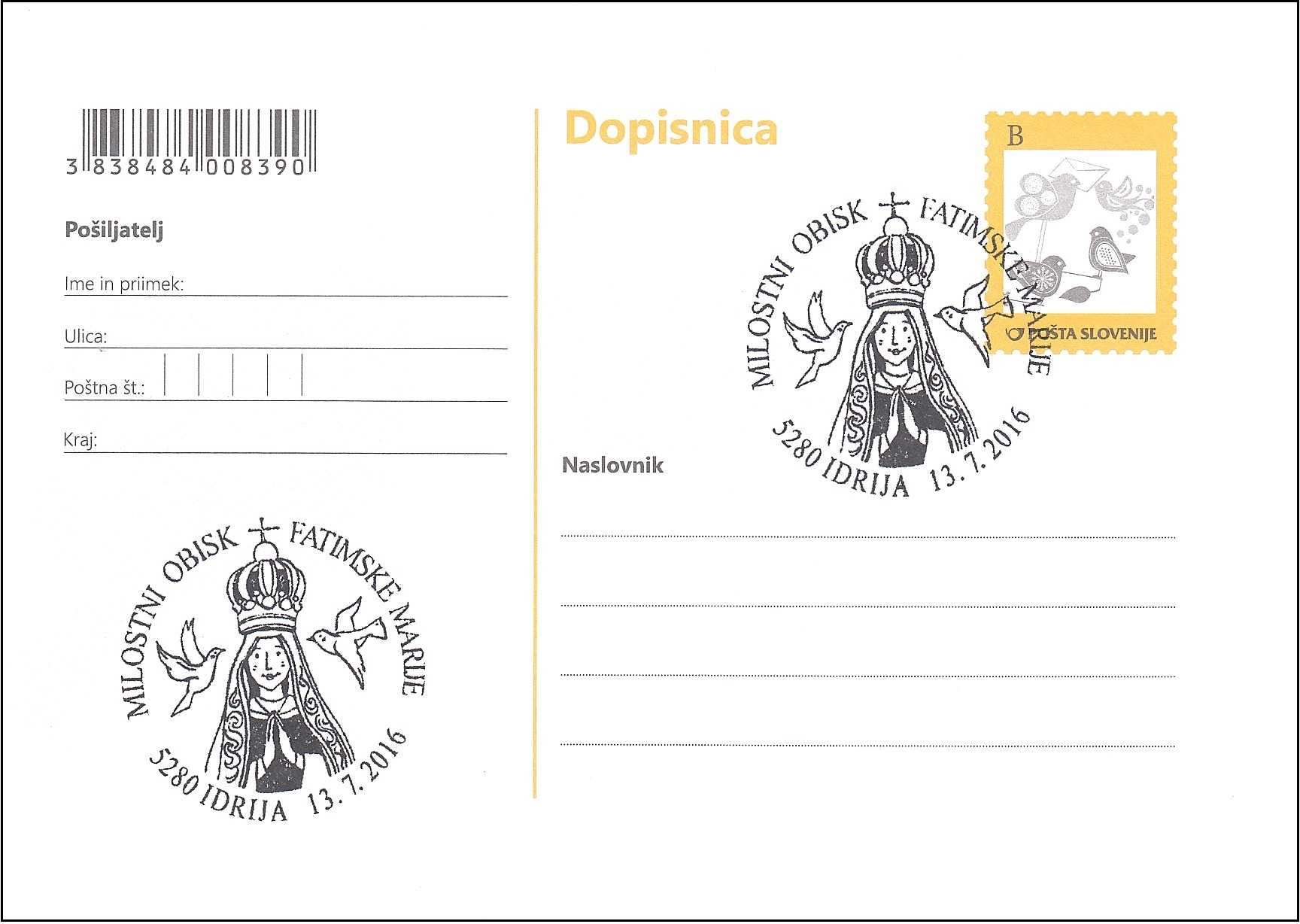 - Priložnostni poštni žig: 107/2016