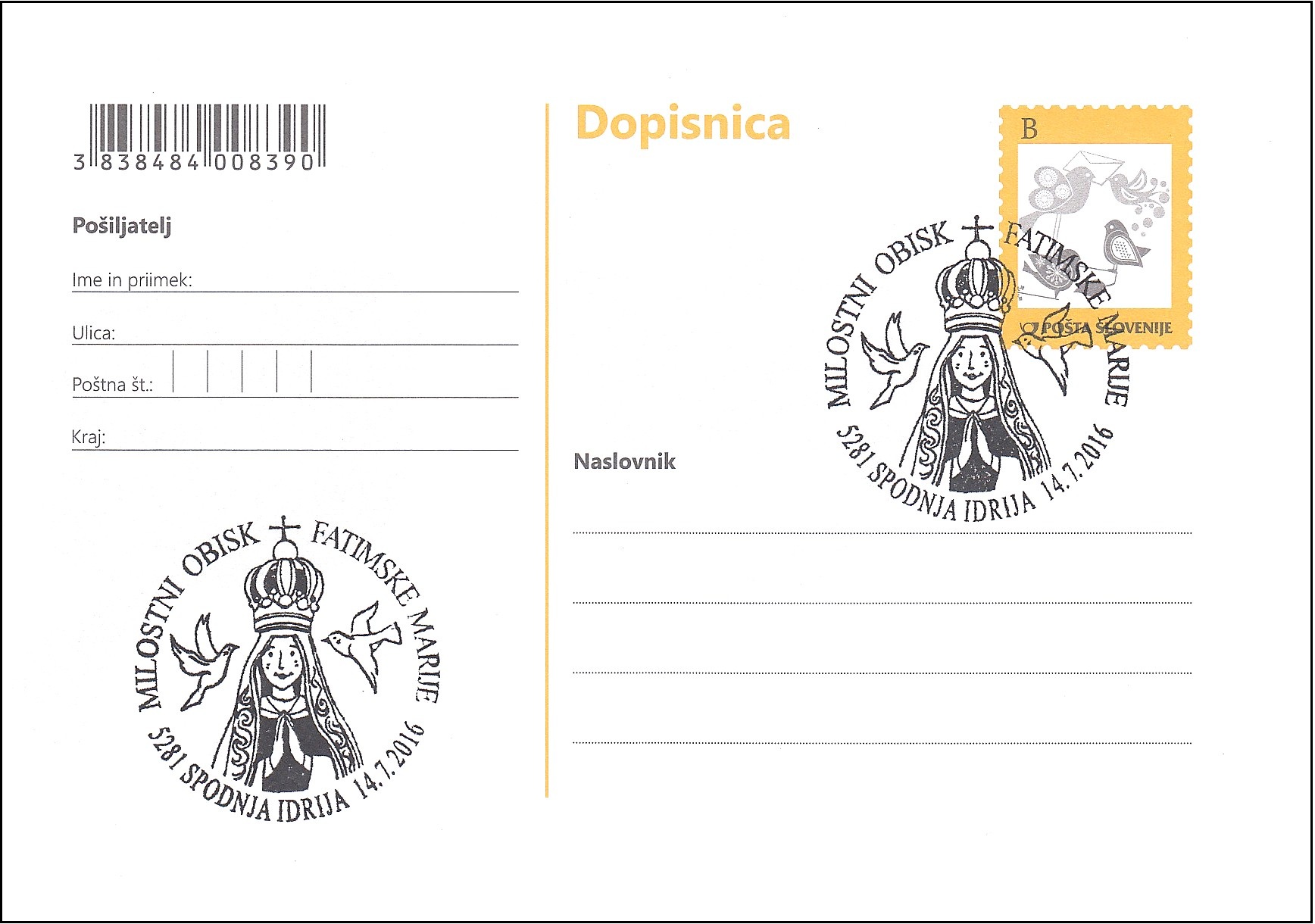 - Priložnostni poštni žig: 107/2016